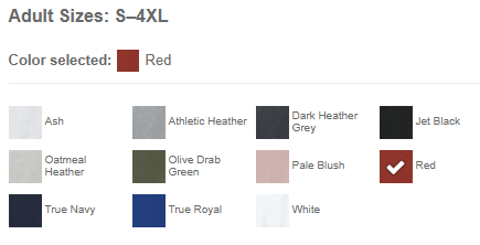 Multiple colors and sizes